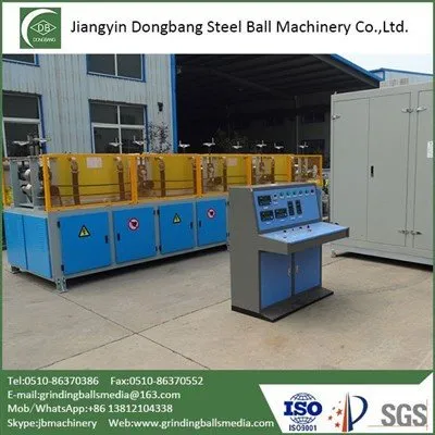 D25MM-40MM Csiszológolyós ferdén hengerlő gép, egyedülálló, szuper nagy sebességű kialakítás, speciális, 4 fejű hengerelt formánkkal. Sebességtartomány: 200-360 golyó percenként, megegyezik az óránkénti teljesítménnyel: 1,5-3,5 tonna óránként.